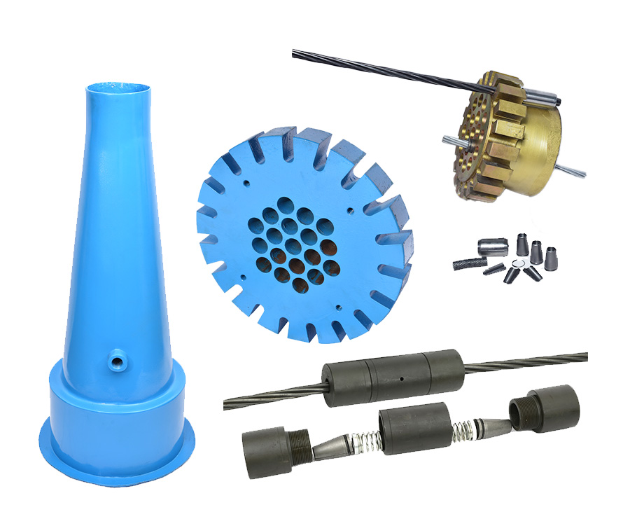 Wedges and barrels are essential components for securing prestressing wires or strands to reaction beams. The selection of these components is based on the type and diameter of the prestressing wire being used. At Dynamic Prestress, we offer a comprehensive range of wedges and barrels suitable for all types of LRPC strands, including normal, galvanized, and epoxy-coated varieties.